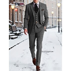 Per uomo Blazer+Gilet+Pantaloni eleganti Blazer Affari Lavoro Matrimonio Moda Streetwear Autunno Inverno Tergal Tinta unica 3 pezzi Monopetto Giacca Nero Champagne Rosa Borgogna