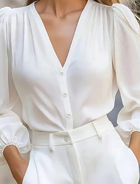 Per donna Camicia Blusa Maglie a manica lunga Arricciato Semplice Elegante Classico Moderno Manica Lunga Scollo a V Top Regolari Quotidiano Ferie Uscire Nero Bianco Grigio Primavera Autunno