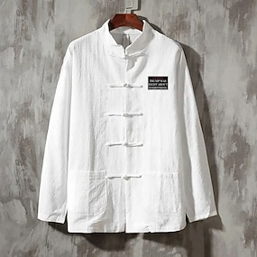 Per uomo Camicia Camicia in lino e cotone Camicia in cotone bianco Camicia con colletto cinese Camicia con colletto alla coreana Maglietta informale Liscio Da mare Hawaiano Nero Bianco Blu Cachi