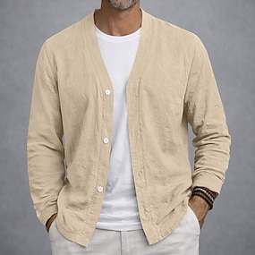Per uomo Camicia di lino Camicia Estiva Abbigliamento da spiaggia Camicia con Bottoni Cardigan Semplice Casuale Vacanza Blu Nero Bianco Cachi Manica Lunga Scollo a V Estate Primavera Abbigliamento