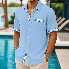 Per uomo Floreale Camicia con Bottoni Maglia Henley Manica Corta Hawaiano Resort All'aperto Affari / Cerimonia / Matrimonio Casuale Estate Primavera Autunno Collo ripiegato Bianco Blu Cachi