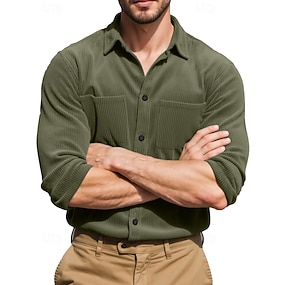 Per uomo Camicia Camicia casual Camicia di Velluto a Coste Nero Blu marino scuro Marrone Verde Grigio Manica Lunga Semplice Colletto a Camicia Casuale Quotidiano Bottoni Abbigliamento Elegante Moda