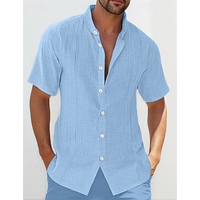 Per uomo Camicia Camicia di lino Camicia Estiva Abbigliamento da spiaggia Camicia con Bottoni Tinta unica Casuale Vacanza Nero Bianco Blu marino Azzurro cielo Manica Corta Colletto alla coreana
