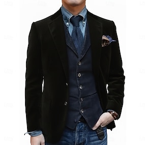 Per uomo Giacca in Velluto a Coste Colletto ad incastro Moda All'aperto Casual Tinta unita Blazer Nero Blu scuro Vestibilità su misura Monopetto Due Bottoni