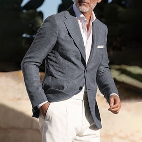 Per uomo Blazer di Lino Colletto ad incastro Moda Classico Casual Tinta unita Blazer in lino Nero Bianco Rosa Vestibilità su misura Monopetto Due Bottoni