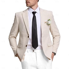 Per uomo Blazer di Lino Giacca Sportiva Colletto ad incastro Moda Casual Tinta unita Blazer Verde salvia Grigio chiaro Beige Vestibilità standard Monopetto Un Bottone