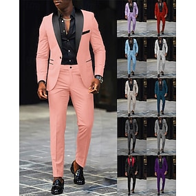 Per uomo Blazer Completi Affari Cocktail party Ricevimento di matrimonio 2 pezzi Moda Casual Primavera Autunno Poliestere Semplice Tasca Bottoni Confortevole Monopetto Giacca Nero Bianco Giallo Rosa