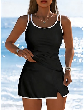 Per donna Costumi da bagno Tankini Due pezzi Gonna Costume da bagno Controllo della Pancia Vita alta Snello Senza schiena Vacanza Abbigliamento da Spiaggia Tinta unica Collo a U Senza Maniche Costumi