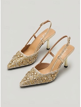 Décolleté da donna con cinturino posteriore e strass – eleganti décolleté a punta con tacco a spillo per cocktail party &eventi serali