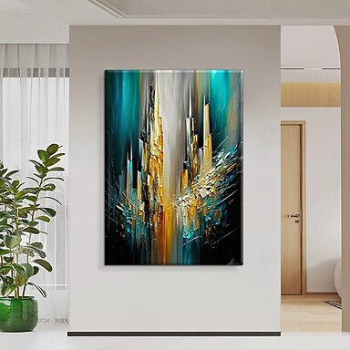 dipinto a olio fatto a mano su tela, decorazione da parete, architettura urbana, street art, astratto per arredamento d'interni, dipinto appeso su telaio teso/dipinto arrotolato senza cornice