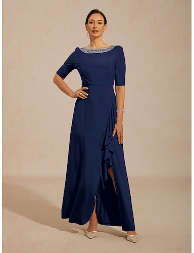 Per donna Abito maxi Tubino Elegante Tinta unica Mezza Manica Scollo a Barca Blu marino