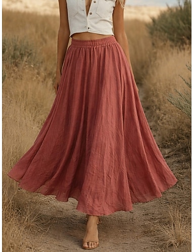 gonna da vacanza da donna in finto cotone e lino stile bohémien vintage casual maxi a vita alta tinta unita elastico in vita fluida elasticizzata per tutti i giorni spiaggia blu rosa chiaro rosa scuro nero estate cotone lino