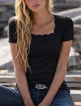Per donna Maglietta Top Eleganti Tinta unica Elegante Essenziale Manica Corta Collo quadrato Top Regolari Quotidiano Sportivo Uscire Nero Estate Primavera