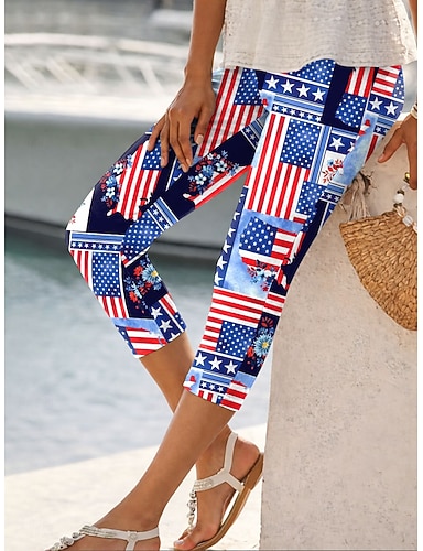 Per donna Chinos Leggings Vacanza Moda Streetwear Capri Vita AltaPantsGiorno dell'indipendenza americana Grafico Bandiera Americana Comodità Morbido Confortevole Elasticizzato Quotidiano All'aperto