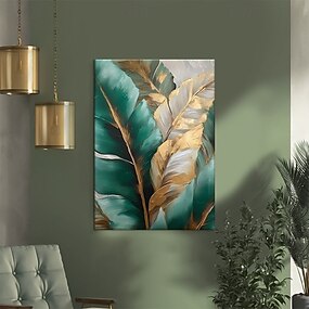 dipinto a olio fatto a mano su tela decorazione da parete astratto verde dorato verde piante foglie di banano per arredamento casa cornice tesa dipinto appeso/telaio arrotolato senza cornice dipinto