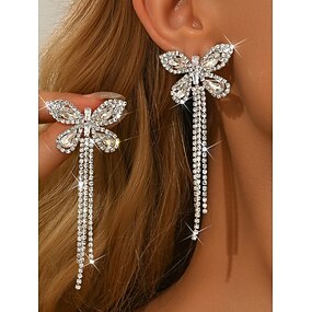 orecchini da donna con nappe a farfalla in strass - gioielli scintillanti, stile glamour ed elegante, perfetti per serate di festa e celebrazioni &occasioni speciali