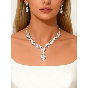 elegante set di collana e orecchini in cristallo da donna – scintillante design a goccia e foglia per matrimoni ed eventi formali