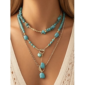 set di collane a strati bohémien da donna, catena in lega e collane con ciondolo di perline turchesi, gioielli vintage chic per donna, perfetti per l'abbigliamento casual quotidiano, per le vacanze, la spiaggia e le feste