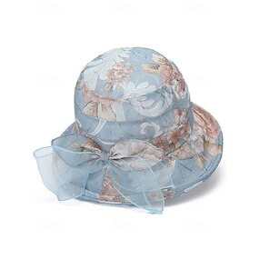Cappello da sole da donna in stile bohémien, traspirante e leggero, in poliestere, con fantasia floreale multicolore e fiocco, perfetto per le vacanze al mare, l'uso quotidiano e i viaggi estivi.
