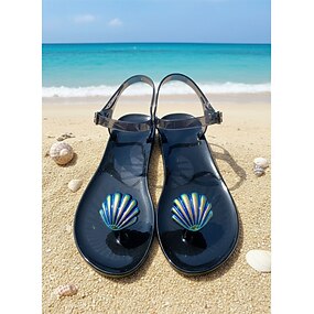 Sandali da donna in gelatina viola acceso - infradito estive impermeabili con decorazioni a conchiglia iridescenti per vacanze al mare e feste a bordo piscina &abbigliamento da resort tropicale