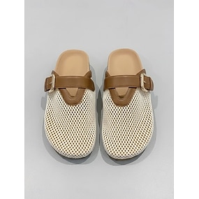 Zoccoli da donna beige in rete – comodi mocassini traspiranti con cinturino con fibbia, suola antiscivolo leggera, scarpe casual da passeggio per viaggi, giardino e uso quotidiano