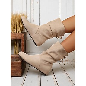 stivali da donna a metà polpaccio con tacco a mandorla – stivali bassi e morbidi in finta pelle scamosciata, adatti per abbigliamento casual e outfit quotidiani