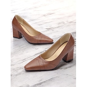 décolleté con tacco a blocco marrone da donna – scarpe formali retrò a punta con eleganti dettagli di cucitura per l'ufficio e le feste