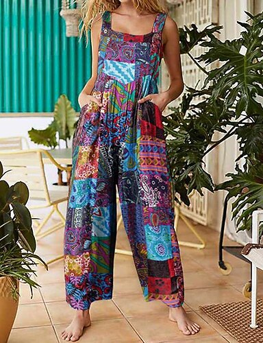 Per donna Normale Tuta Attivo Floreale Senza Maniche Gamba larga Collo quadrato Tasca Stampato Quotidiano Vacanza Vestibilità comoda Blu Nero Fucsia Estate