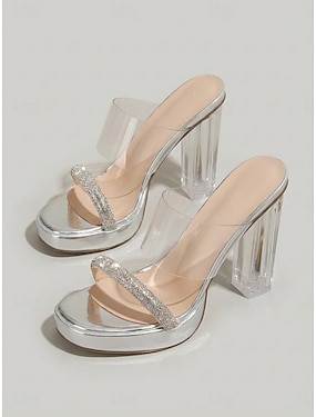 sandali da donna con plateau, tacco alto e punta aperta, dettagli in strass, elegante design con cinturini per cocktail party