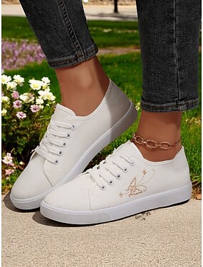 scarpe da ginnastica bianche flessibili in tela da donna – scarpe leggere pieghevoli con lacci per viaggi, passeggiate e abbigliamento casual