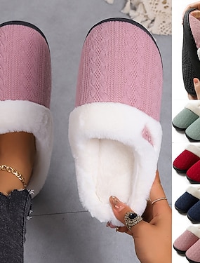 pantofole da donna foderate in pile lavorato a maglia rosa - comode scarpe invernali da interno con suola antiscivolo