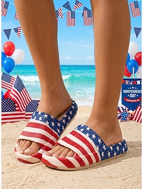 ciabatte da spiaggia da donna per il 250° anniversario degli Stati Uniti - ciabatte patriottiche a forma di nuvola con stelle e strisce per il giorno dell'indipendenza del 2026, le vacanze estive e le feste in piscina all'aperto