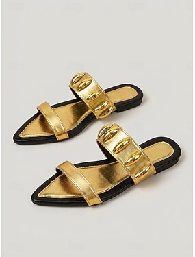 sandali piatti da donna color oro metallizzato - slip-on a punta aperta per le vacanze e la cena &scarpe da sera da resort