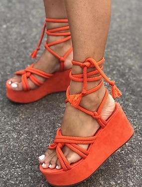 sandali con plateau stringati in corda arancione da donna – zeppe boho per abbigliamento estivo da spiaggia e da festival