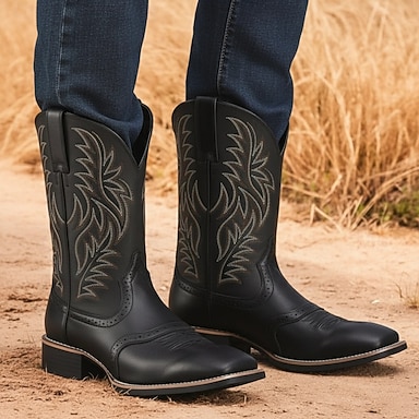 stivali da cowboy western da uomo: classici marroni con design ricamato, calzature in stile western vintage per eventi country, rodei e gite informali