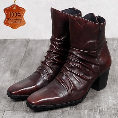 stivali da uomo in pelle color marrone con dettagli arricciati: alla moda e comodi per incontri serali ed eventi formali