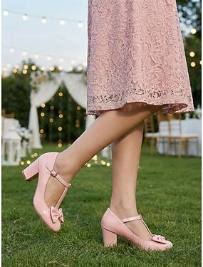 Décolleté Mary Jane rosa da donna con tacco a blocco e dettaglio a fiocco, eleganti scarpe da madre della sposa per matrimoni in giardino, décolleté vintage a punta tonda per cerimonie all'aperto