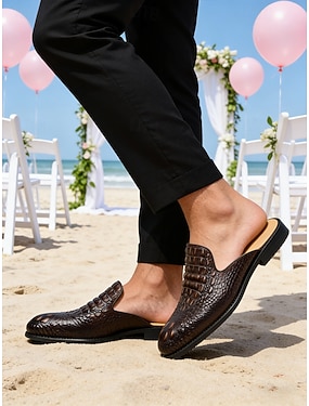 muli da uomo in vera pelle – muli marroni slip-on per matrimoni estivi e feste in spiaggia