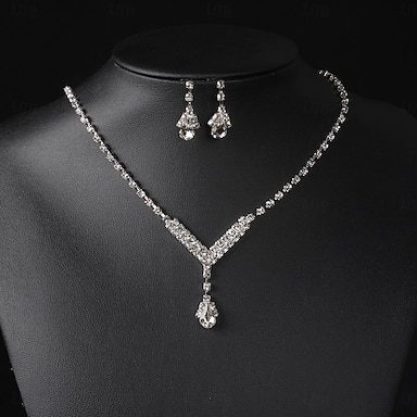 elegante set di gioielli in argento con strass – collana a goccia e orecchini pendenti per donna