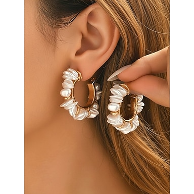 orecchini a cerchio da donna in stile bohémien con perle artificiali, delicati &Elegante, perfetto per le vacanze al mare, per l'abbigliamento casual di tutti i giorni, e come accessorio per matrimoni