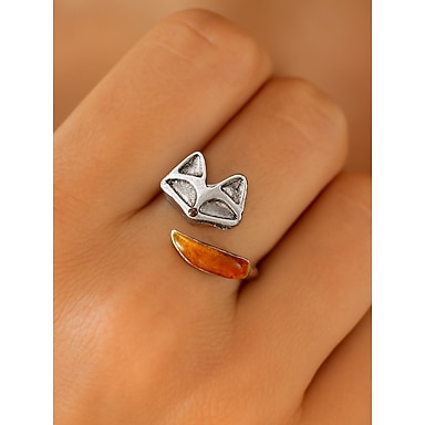 anello in lega regolabile da donna con design a forma di volpe – grazioso anello aperto a forma di animale con accenti color ambra per ragazze e donne, ideale per l'uso quotidiano, regali e abiti casual