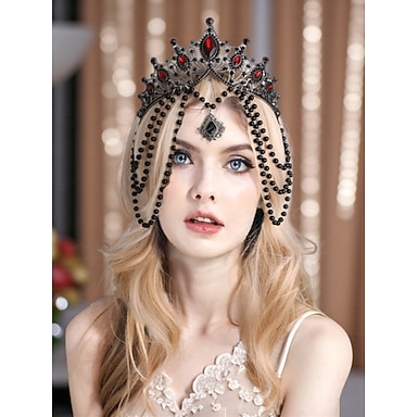Copricapo gotico da donna con perline nere e gemme rosse - tiara vintage per costumi e cosplay per feste di Halloween