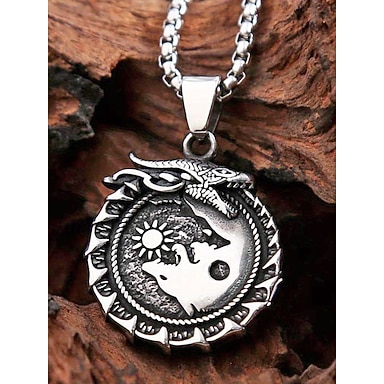 Collana in lega da uomo in stile vichingo – ciondolo drago e lupo, design yin-yang, perfetta per l'uso quotidiano casual