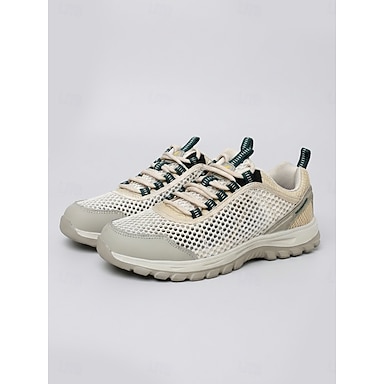 Scarpe da trekking leggere beige da donna: sneakers da esterno traspiranti in mesh con lacci e suola antiscivolo per trekking, passeggiate su sentieri e viaggi.