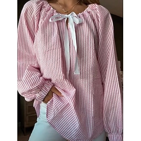 Per donna Camicia Blusa Stampato A righe Essenziale Casual Manica Lunga Girocollo Top Regolari Quotidiano Rosa Cachi Azzurro Primavera & Autunno