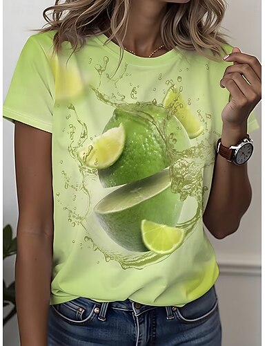 Per donna Maglietta Stampato Grafico Cartoni animati Astratto Vintage Elegante Casual Manica Corta Girocollo Top Regolari Casuale Quotidiano Verde Estate Primavera