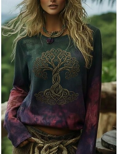 Per donna Camicia Boho Maglietta Stampato Grafico Bohemien Vintage Casual Manica Lunga Girocollo Top Regolari Quotidiano Weekend Abbigliamento da vacanza Verde Estate Primavera Autunno