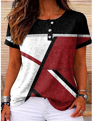 Per donna Top a maglia con texture Maglietta Blocco di colore Ombre Grafico Astratto Elegante Classico Manica Corta Girocollo Henley Top lunghi Quotidiano Sportivo Blu Rosso Viola Estate Primavera