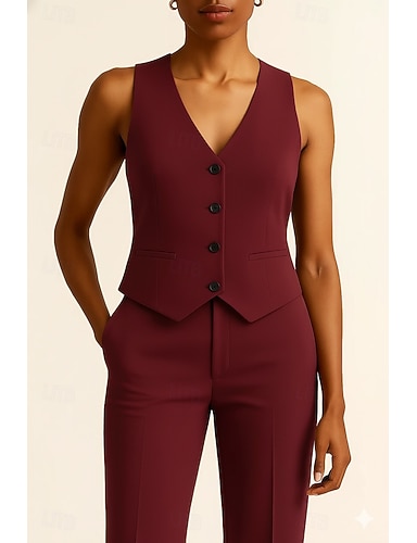 Per donna Gilet da completo Feste Formale Abbigliamento da lavoro Elegante Classico Senza Maniche Scollo a V Monopetto