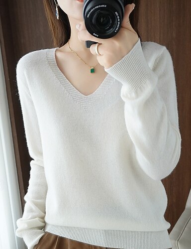 Per donna Felpa Maglione Elegante Moda Carino Tinta unica Scollo a V Lavorato a maglia Manica Lunga Top Regolari Maglia All'aperto Quotidiano Ferie Bianco Giallo Autunno Inverno